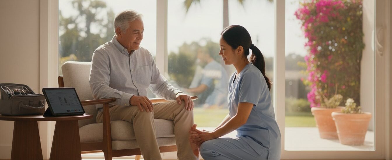 Physical exertion often exacerbates leg edema and venous insufficiency. For residents in La Jolla, Chula Vista, or Escondido, the logistics of transport can be prohibitive and physically taxing. Mobile care preserves your energy for what matters: cellular repair. You can learn more about our regional standards in this Expert Mobile Wound Care in Los Angeles & Glendale guide. When you protect your feet through proactive, at-home monitoring, you maintain the peak performance of your circulatory system without the wear and tear of a commute.